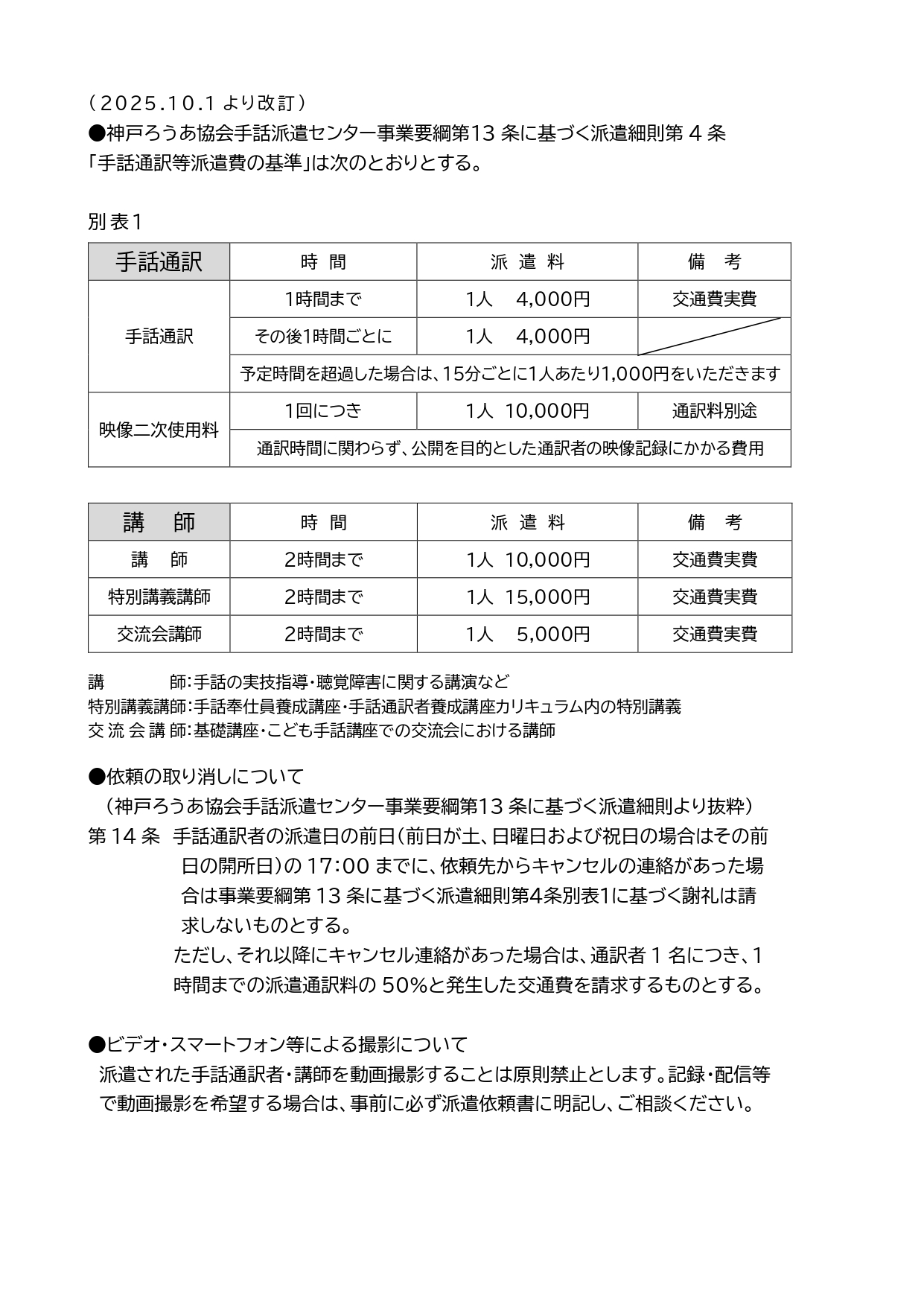 (神戸ろうあ協会手話派遣センター事業要綱第13条に基づく派遣細則より抜粋)