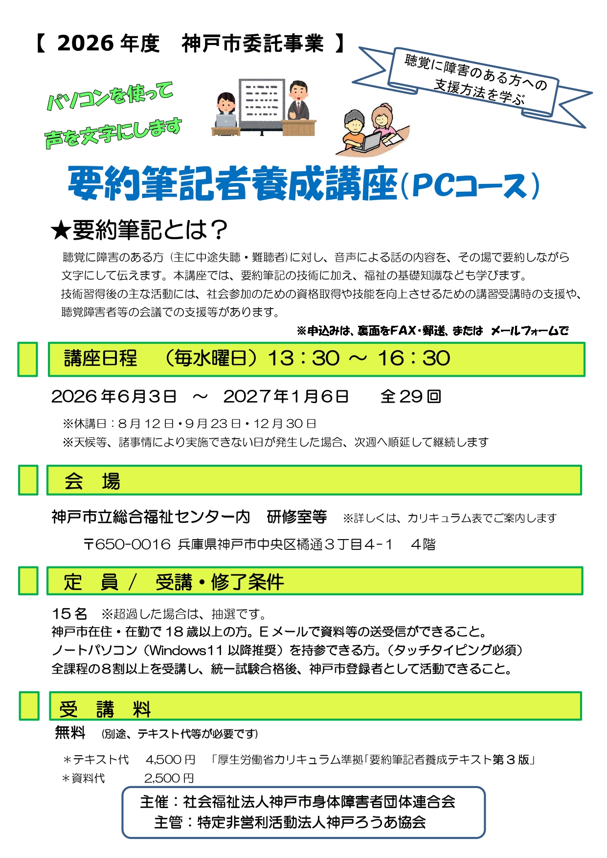 令和8年度 要約筆記養成講座(PCコース) 開講します