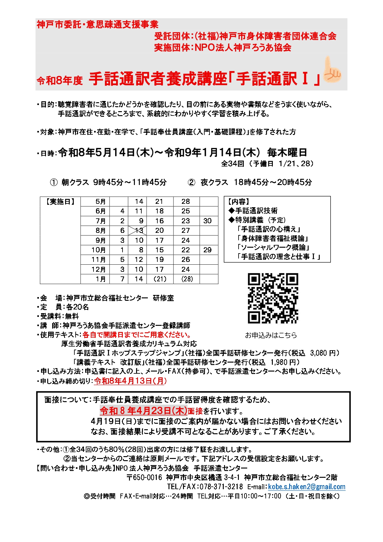 神戸市立総合福祉センター4階 研修室または会議室 (中央区橘通3-4-1)